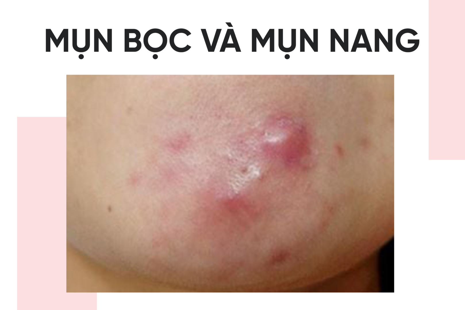 * Đặc điểm: Nốt mụn lớn, sưng đỏ, nằm sâu dưới da, đau nhiều. Mụn nang thường có mủ bên trong.