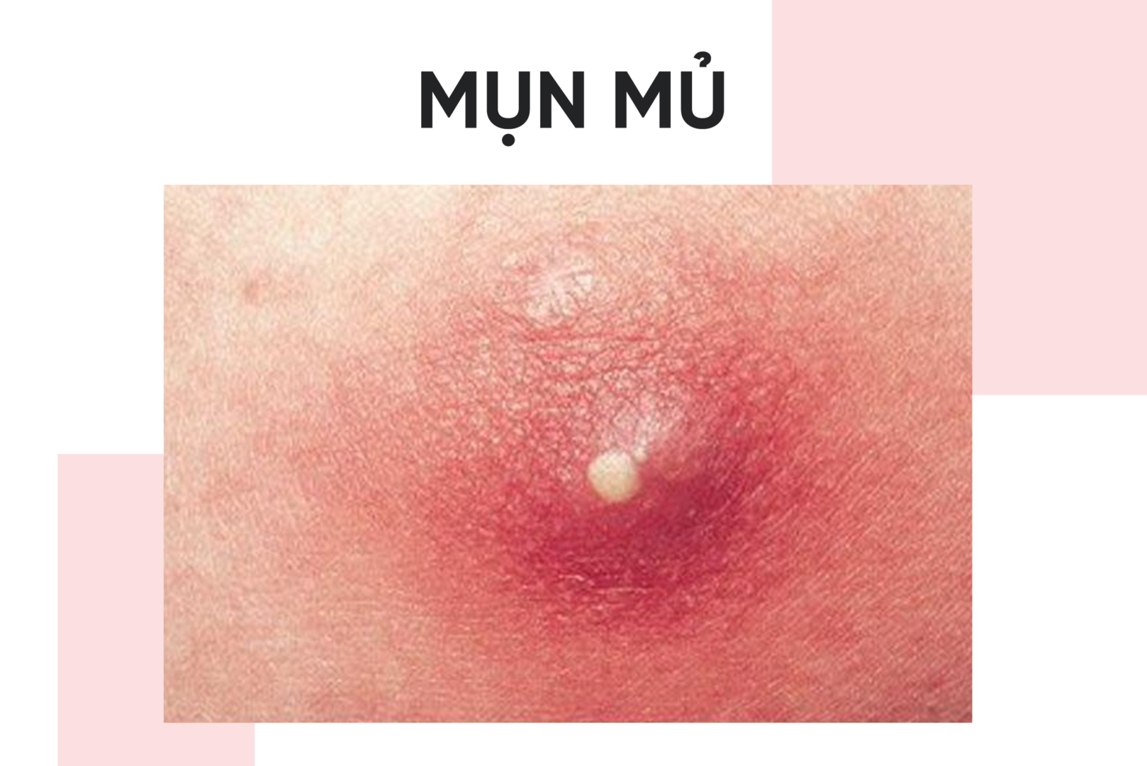 * Đặc điểm: Nốt mụn sưng đỏ, bên trong có mủ màu trắng hoặc vàng.
